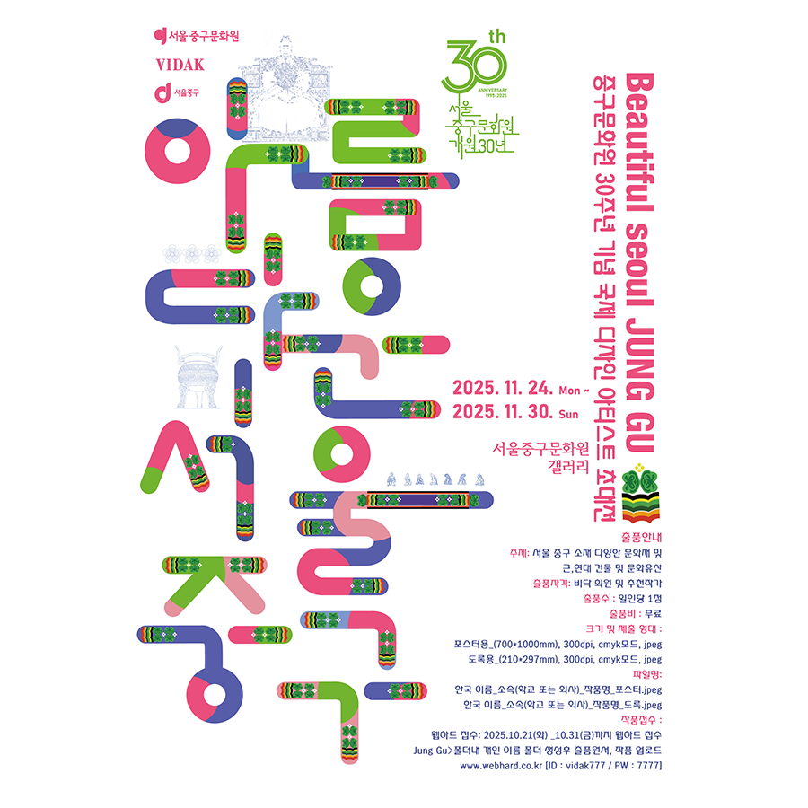 2025 VIDAK [Beautiful Seoul JUNG GU]: Announcing the International Design Artist Invitational Exhibition to Celebrate the 30th Anniversary of the Jung-gu Cultural Center.